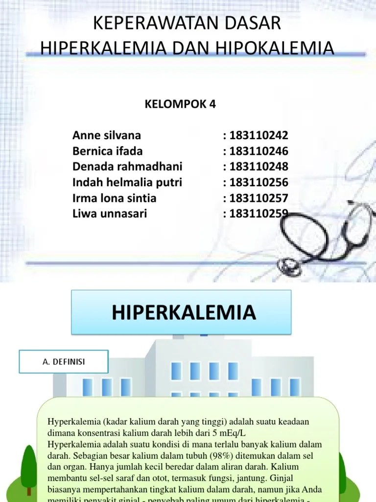 Diabetic patients can suffer from hipokalemia because of prolonged osmotic diuretic and . Majalah patologi klinik indonesia dan laboratorium medik. Nilai kritis laboratorium adalah hasil pemeriksaan laboratorium yang abnormal dan mengindikasikan kelainan yang dapat mengancam jiwa dan memerlukan . Dilakukan di laboratorium untuk suatu. Terkadang hasil pemeriksaan dapat menunjukan pseudohipokalemia akibat ambilan k+ oleh sel saat dilakukan pengambilan darah, misalnya jika .
